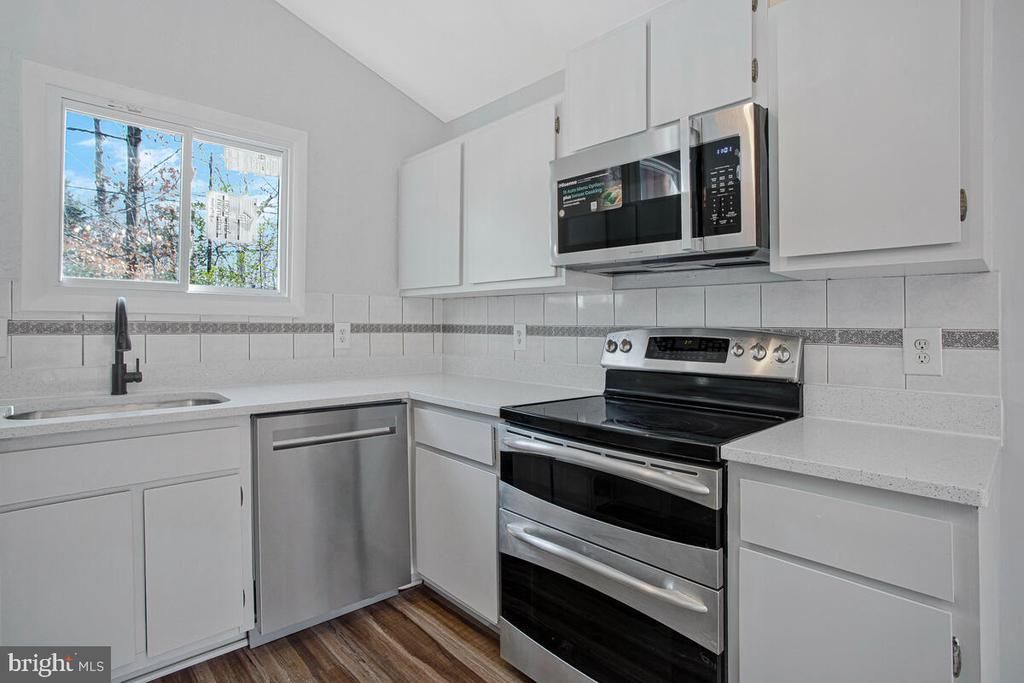 This fully updated contemporary home features vaulted ceilings, clean architectural lines, and true move in ready condition from top to bottom. Inside, you’ll immediately notice the brand new flooring, fresh paint throughout, and the open, light filled living space with soaring ceilings. The updated kitchen features new stainless steel appliances and quartz countertops, giving it a crisp, modern feel while still remaining functional and practical for everyday living. The layout flows easily from the main living area into the dining space and out to the spacious rear deck, perfect for relaxing or entertaining. The elevated deck offers a private wooded backdrop, creating a peaceful outdoor setting. Every major cosmetic update has already been handled, including pre inspection repairs, giving buyers confidence and eliminating the usual guesswork. Located in Chesapeake Ranch Estates in Lusby, you’ll enjoy access to community amenities including multiple beaches, community center, hiking trails and the largest manmade lake in MD Lake Lariat. Lusby offers the ideal blend of Chesapeake Bay lifestyle and everyday convenience, just minutes from Solomons Island, shopping, dining, and the Patuxent River Naval Air Station. With easy access to Route 2 and 4, commuting to Annapolis or Washington, D.C